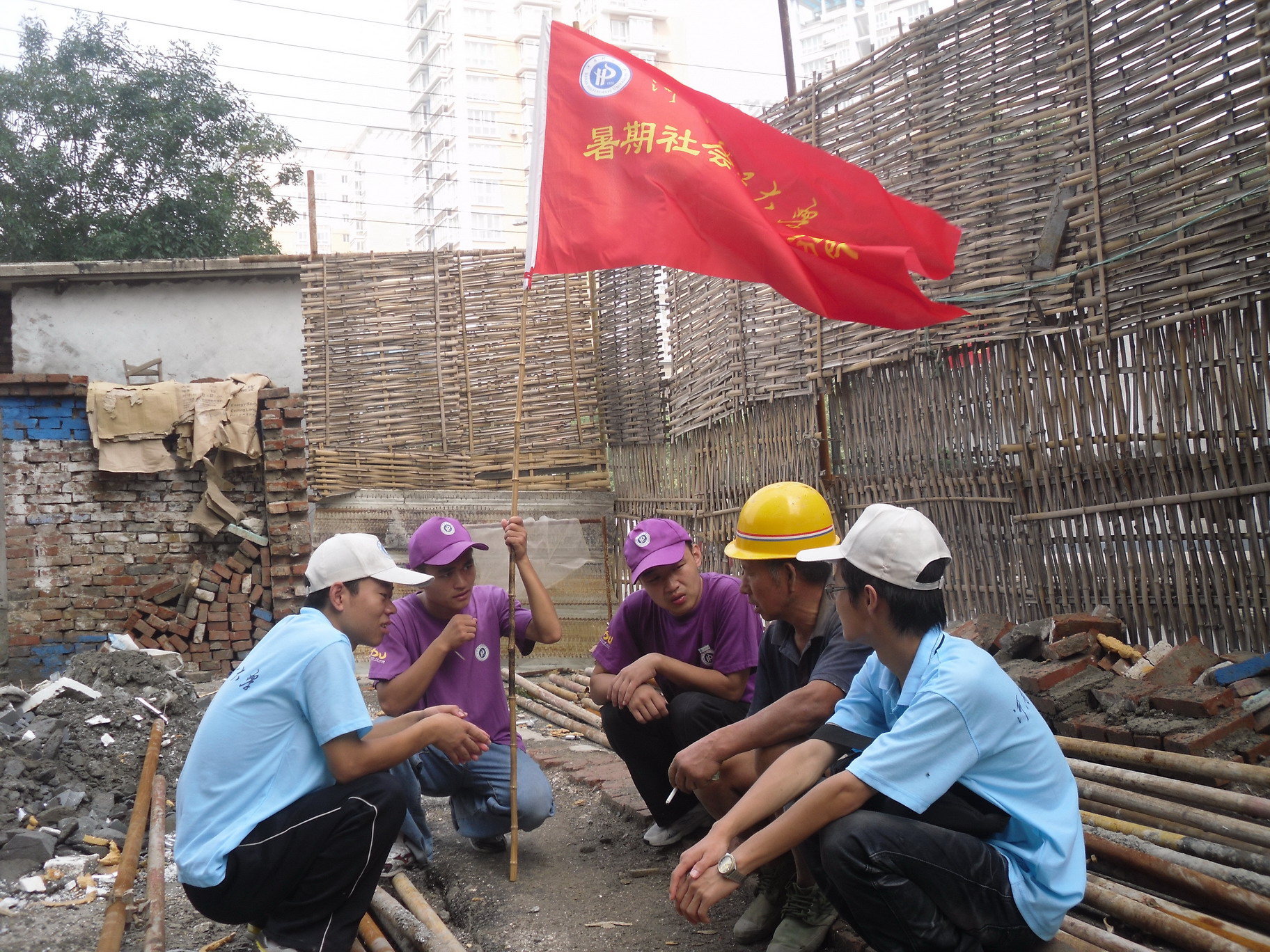 烈日炎炎,酷暑难当。当队员们来到工地的时候,农民工们还在辛苦地工作着,汗水早已浸透了衣襟。休息期间,队员们和他们热情交流,亲切询问他们的生活状况、家庭情况、工资待遇等,并为他们在生活、工作等方面遇到的一系列问题提供了诸多建议,引导他们正确使用法律武器来维护自己的合法权益。此外,一些外地农民工子女将成为留守儿童的问题也得到了小分队的高度重视。现场氛围温馨融洽,队员们青春洋溢的笑脸、热情真诚的关怀给农民工枯燥乏味、艰苦劳累的打工生活带来了别样的精彩与活力,也使他们深刻感受到社会这个大家庭的温暖和谐。