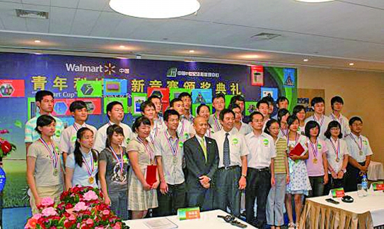 “沃尔玛杯”青年科技创新竞赛近日在上海世博会美国馆举行了颁奖仪式。此次竞赛以“加强科技创新,促进节能减排”为主题,历时4个月,共征集到来自全国51所高等院校和29所高中的663项作品,涉及资源环境、机械制造、信息、生物、电子等诸多领域。
