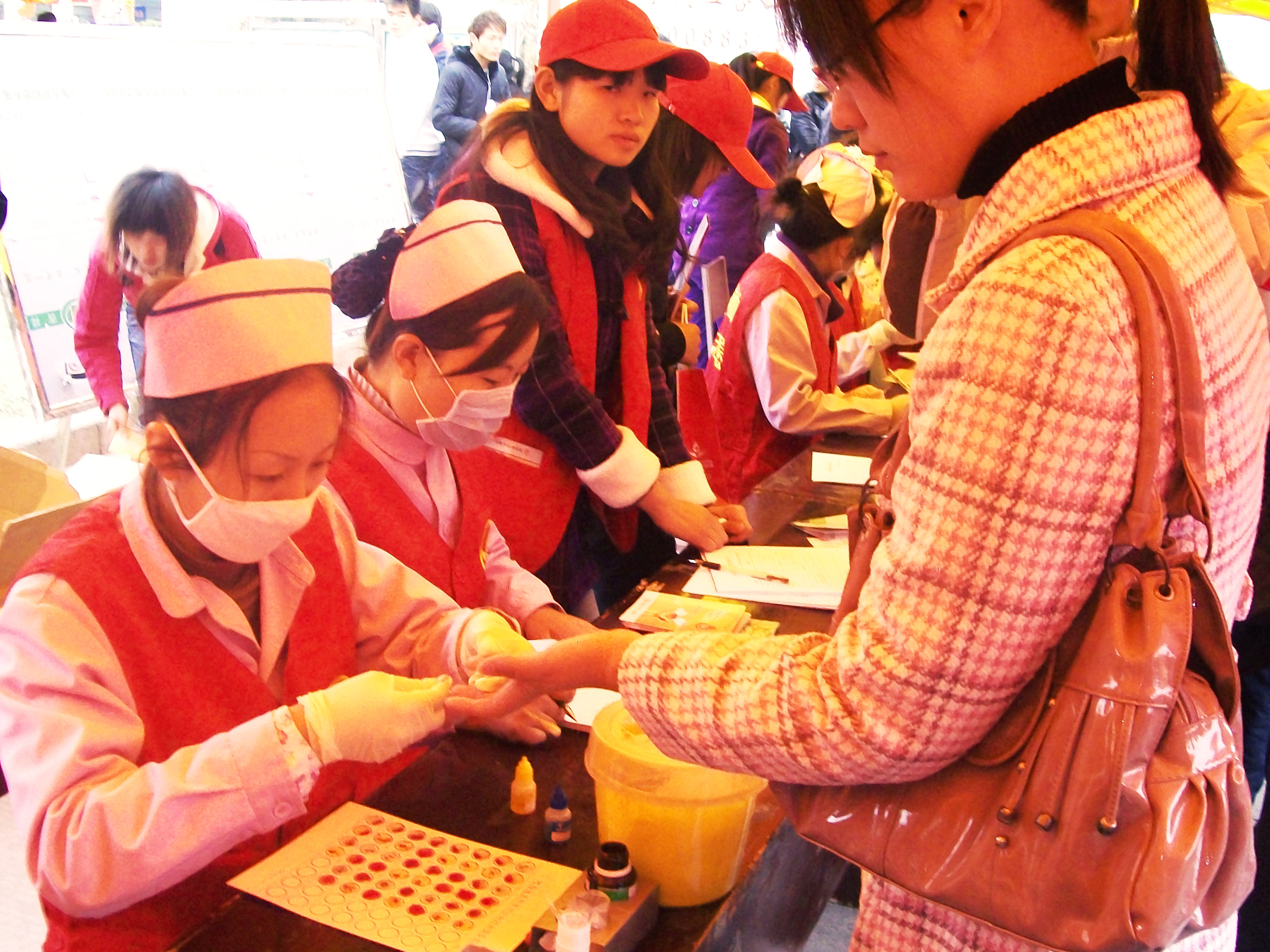 活动现场,老员工志愿者们在现场通过展示宣传板、发放献血知识宣传手册、万人签名活动等多种形式宣传献血知识,使大家充分了解和认识了无偿献血的相关注意事项及其重要意义,极大地提高了同学们参与无偿献血活动的积极性,并通过各个高校之间的交流互动,有力促进了老员工志愿者“博爱、奉献”精神的传播。宣传志愿者的“无偿献血”标志的红马甲,“红十字”标志的小红帽,在初冬的寒风中构成了理工校园一道亮丽的风景线。医疗服务队工作人员在现场热心地位同学们解疑答惑,讲解献血健康知识,同时免费提供验血服务,并向同学们赠送了精美礼品,他们热情周到的服务、吃苦耐劳的精神以及认真负责的态度得到了现场同学的赞誉。同学们积极参与宣传、验血及献血活动,凸显了高校老员工对社会公益事业的广泛关注和支持。