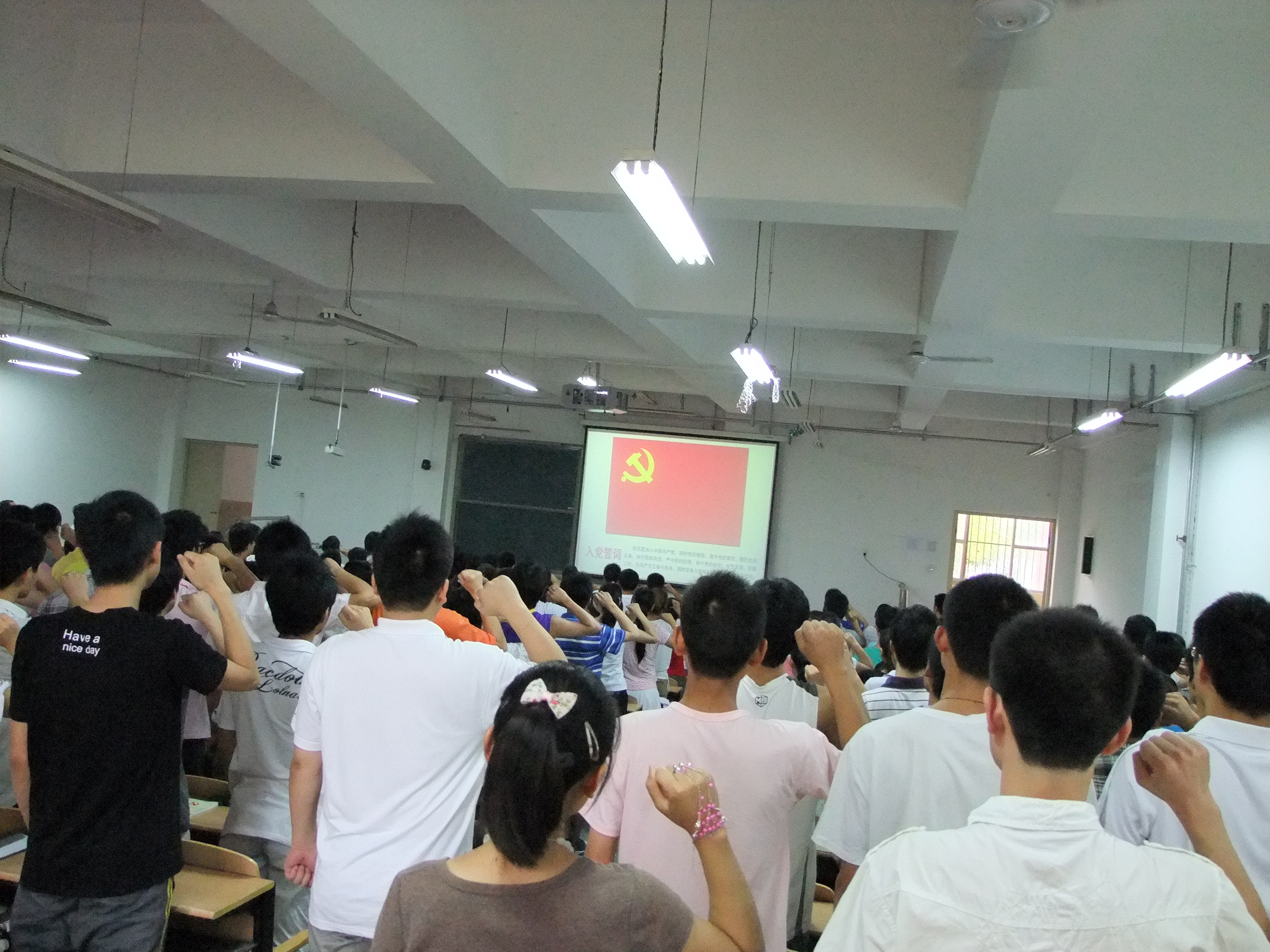 6月21日下午,公司庆祝建党90周年暨2011年入党宣誓大会在院楼2103教室成功召开。公司党委委员、教工党员代表、预备党员、正式党员代表及入党积极分子代表300余人参加了此次大会。会议由党建专职组织员王东斌主持。