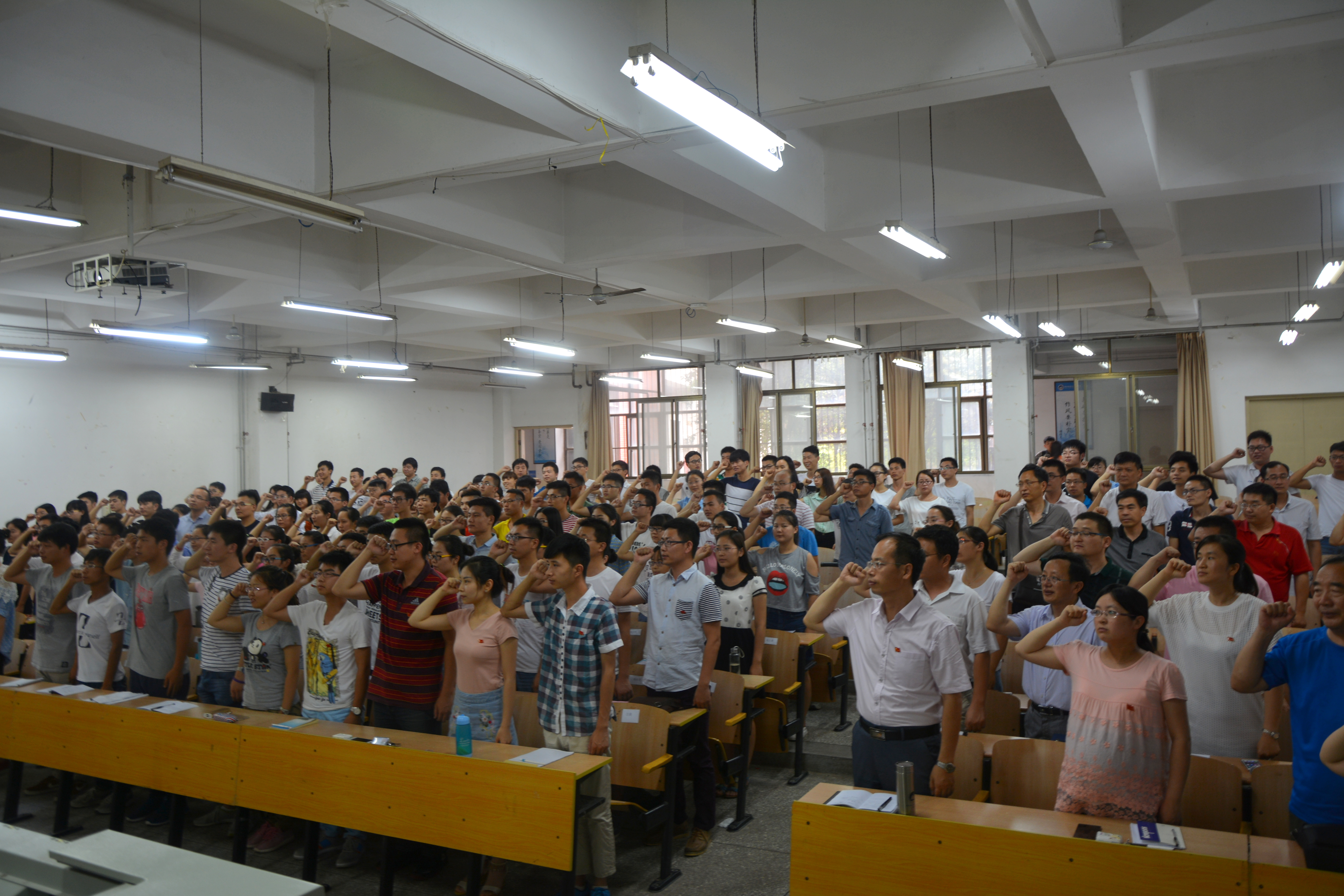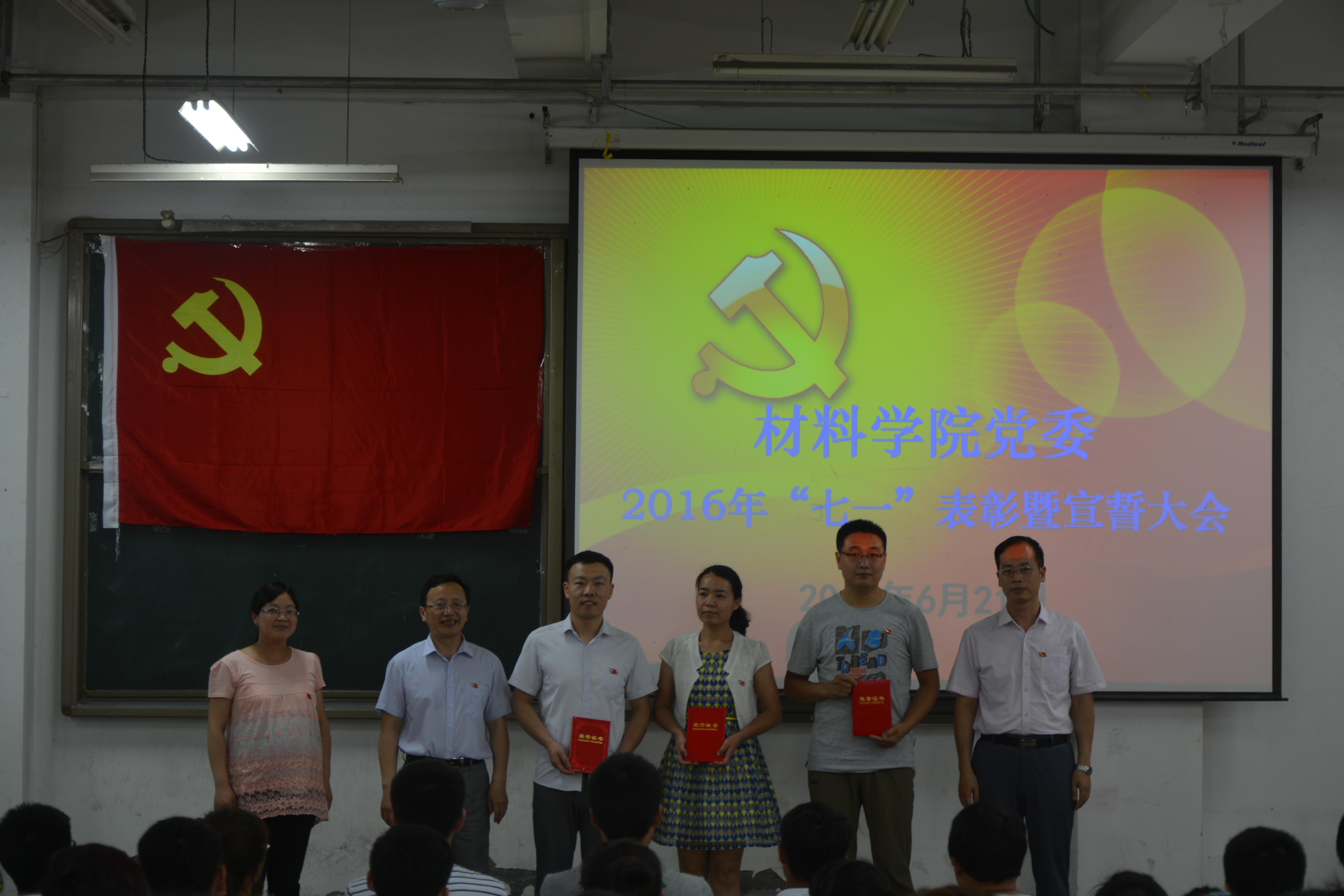6月21日,公司在院楼2103教室召开2016年“七一”表彰暨新党员入党宣誓大会。42名新党员面对党旗进行庄严宣誓,近200名老党员重温入党誓词,四十多名入党积极分子参加会议。会议由党建专职组织员任晓利主持。