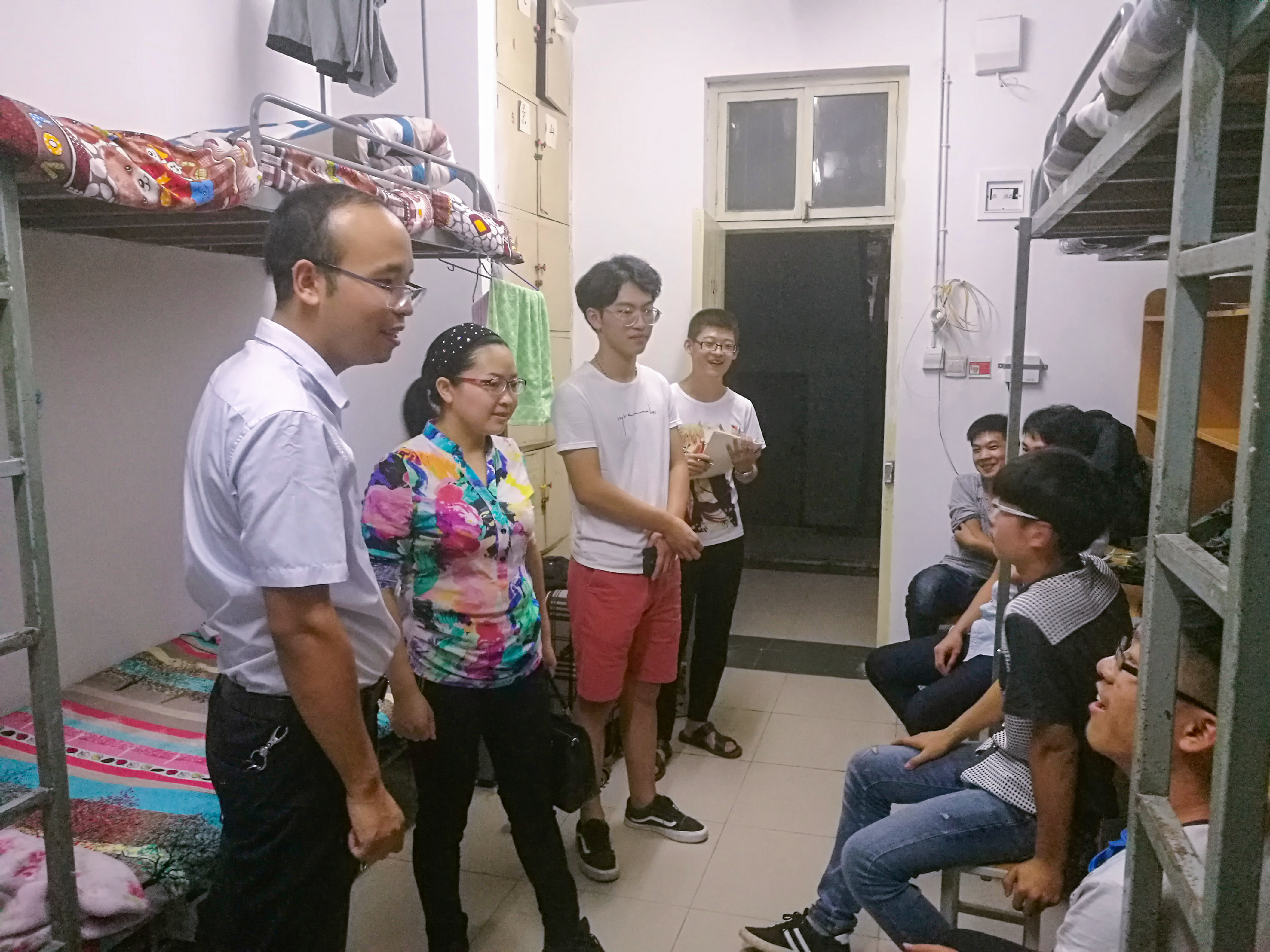 连续三天的新生报到工作圆满结束,值此时机,为帮助新生解决困难,使广大新生切实感受到公司的关切,9月8日晚,公司领导班子成员及辅导员带着全院教师的殷切关怀深入走访新生宿舍,与新生进行了面对面的交流沟通。