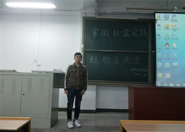 活动开始,实践部副部王明志主持,说明了此次活动将以交流沟通的方式来共享心得体会,并把经验分享给未来参与活动的同学。随后6名嘉宾依次上台分享自己的寒假实践经历与体会。王军同学优盘电子厂兼职工的经历,让我们懂得要珍惜当下的学习条件;焦咏思同学在小学当老师的体会,让我们明白交际的重要性;还有任晓钒同学在老年公寓帮助老人的体验,梁世衡同学钢厂做生意的感受,王非凡同学志愿者的体验,王岚同学在图书馆帮忙的经历,向我们展示了他们有价值,有意义,有付出,有收获的寒假生活。