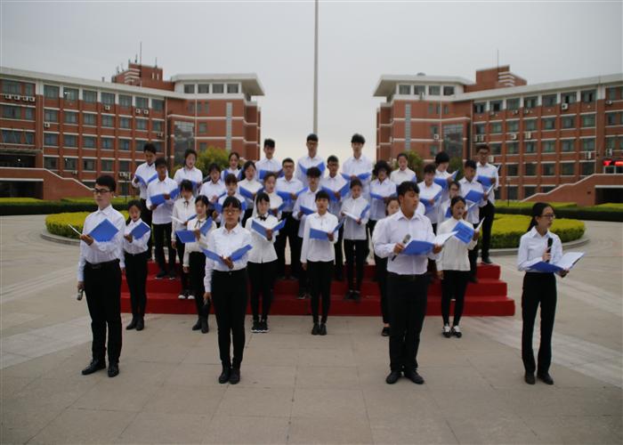 7时许,伴随着慷慨激昂的国歌声,在师生庄严肃穆的注目礼中,五星红旗冉冉升起。