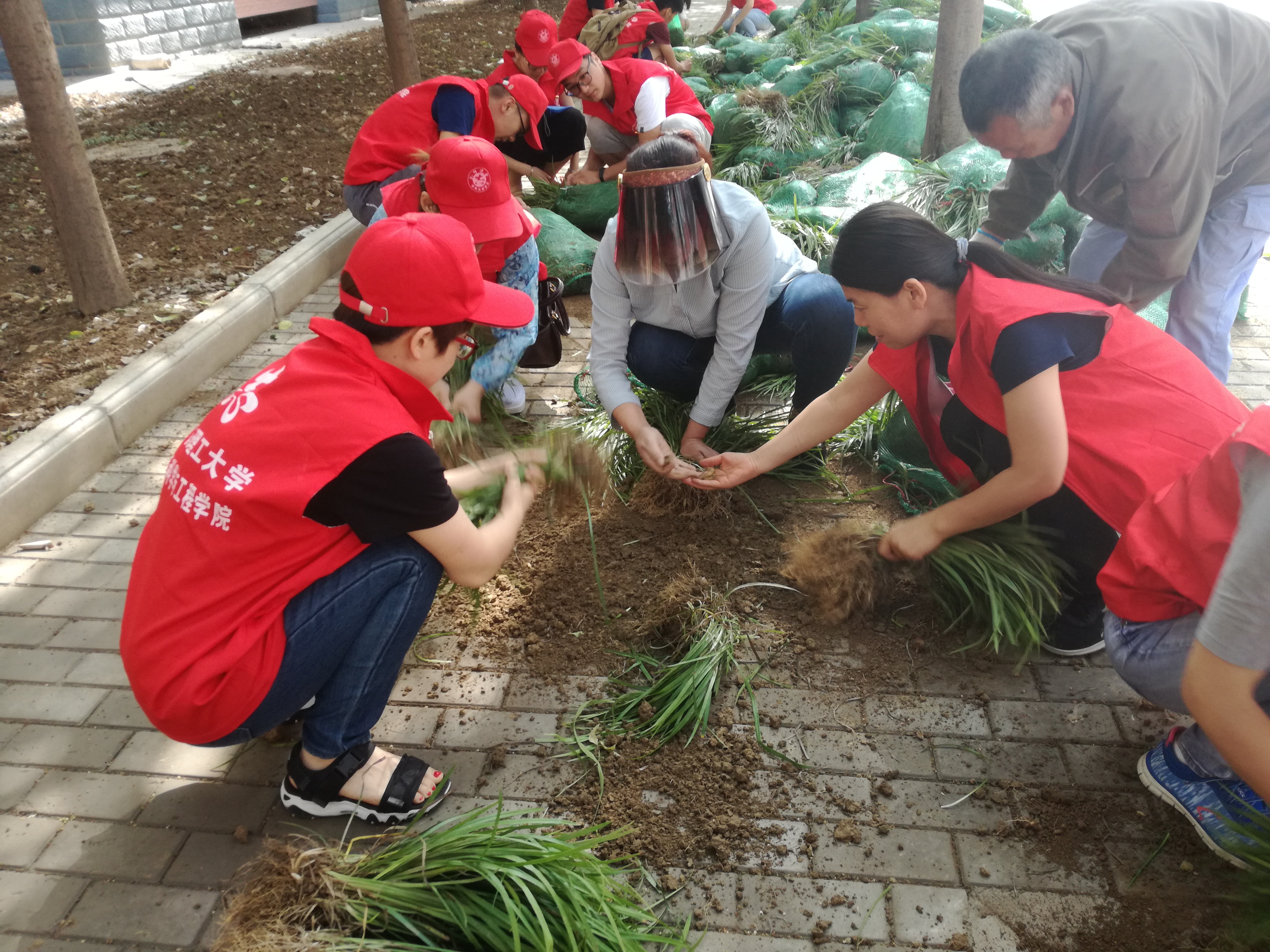 上午8时,在小区工作人员的指引下,佩戴党徽、身穿志愿服、头戴小红帽的党员志愿者来到小区东西主干道人行道上,对准备移植的麦冬根部多余的泥土进行清理。虽然任务量大,刚下过雨,麦冬根部的泥土多,而且不好去除,但大家还是积极劳动,任劳任怨。经过两个小时的辛勤劳动,一大堆清完泥土的麦冬呈现在大家面前,大家成就感满满的。