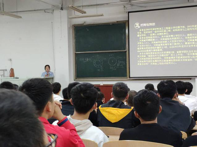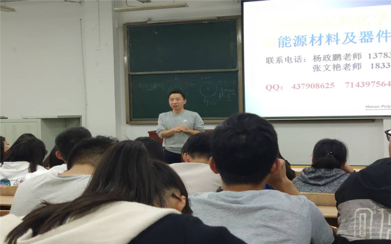 四位教师从公司发展历程、专业发展趋势、研究成果介绍开始,详细介绍了本院的团队建设情况和团队队伍建设情况。结合本专业培养方案讲解培养目标及毕业要求,让同学们对如何正确选课、专业方向选择及如何掌握专业学习方法有了良好的认知,并详细分析了材料科学与工程(包括:无机非金属材料、高分子材料、金属材料)、材料化学、新能源与器件、材料成型及控制工程四个专业员工毕业后的就业去向与就业优势。在讲座过程中,四位教师鼓励19级员工在努力学好专业课的同时,增强创新创业方面意识,加大对其他课程的学习,打好专业基础,学有余力的同学可以考虑双学位,激励19级新生明确学习目标、确定人生方向、合理分配时间、积极主动的投入到学习生活中,并提醒同学们在就业与考研的问题上早思考、早准备,未来一切都有可能,不能满足于目前当前,要有终身学习的能力,才能在未来工作中应付自如。讲座结束后,四位教师分别就课程设置、考研等方面与同学们进行了互动交流。