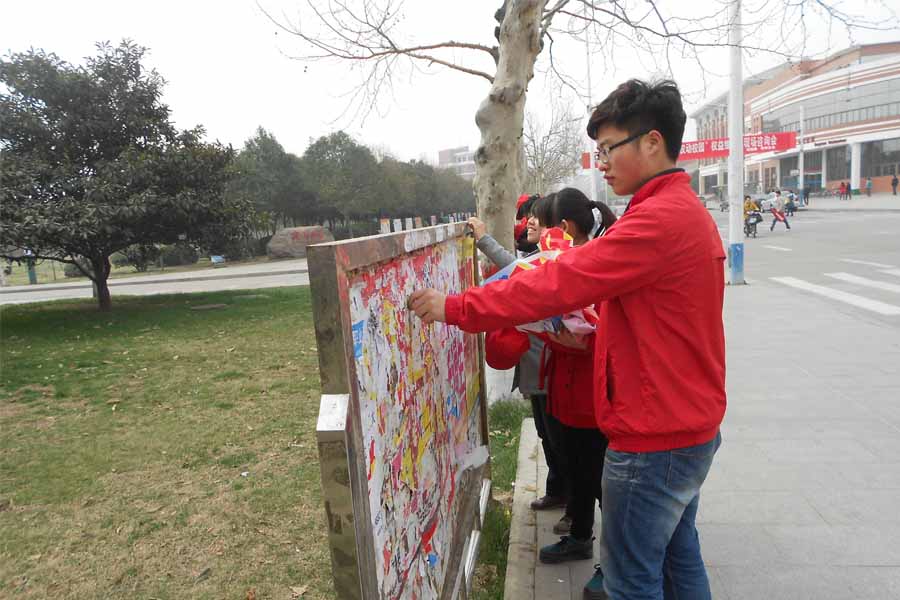 为弘扬雷锋精神,创造良好育人环境。3月19日下午,公司青年志愿者开展了以“学习雷锋精神,净化美丽校园”为主题的报栏维洁志愿活动。活动伊始,志愿者分为三组,分别负责一个报栏的清洁。大家兴致勃勃的赶往各自的活动区域,发扬不怕苦、不怕脏、不怕累的奉献精神,认真的擦拭灰尘,清理小广告,经过一番细致的清理,各个报栏焕然一新。活动期间,路过的同学纷纷向志愿者们投去赞许的目光。据悉,报栏维洁活动将作为材料青协的常规活动坚持下去。此次报栏维洁志愿活动的成功开展,充分激发了同学们参与志愿者服务的热情。既美化了校园环境,也展现了理工大志愿者的风采。太阳成集团tyc33455ccwww青协始终奉行“奉献、友爱、互助、进步”的服务精神,甘为人梯,无私奉献,志愿者们用实际行动履行着志愿者的义务,用各种志愿服务诠释着当代雷锋精神的实质和内涵,使得乐于奉献的雷锋精神在新的时期得以继承和发扬。