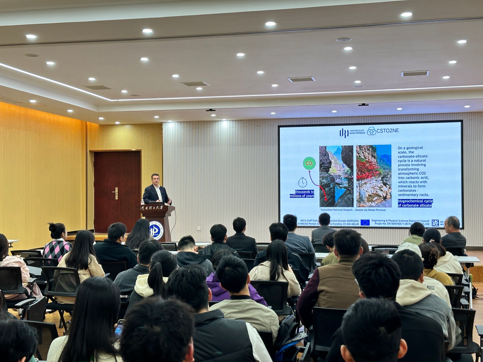 报告会上,Castro-Gomes João(卡斯特罗·戈麦斯 若昂)首先讲述了大自然中二氧化碳的来源,接着介绍了如何利用碳化工艺实现固体废弃物的资源化利用。他详细介绍了碳化工艺,它是将富含钙和镁的废料压制成块,在一定的温度、时间、压力、湿度和二氧化碳浓度的条件下,制备出性能优良的产品的工艺路径。随后,针对这一碳化过程展开了详细的机理讨论,并以视频的方式展示了实验室成果,表明了富含钙镁的胶凝材料具有良好的应用前景。最后,他与参加报告会的师生们进行了互动交流,对大家提出的问题给予了耐心、细致的解答。本次报告十分精彩,与会师生受益匪浅。