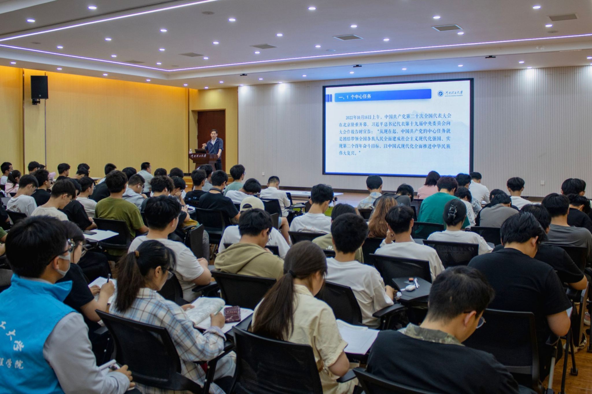 陈昊报告的题目是《以中国式现代化全面推进中华民族伟大复兴》,他以“1549256”做概括,然后系统讲解了中国式现代化的方方面面,包括当前党的中心任务、中国式现代化的五个基本特征、中国式现代化摒弃的四种老路、中国式现代化的九个本质要求、全面建成社会主义现代化强国的两步走战略安排以及中国式现代化需要坚持的五项重大原则。陈昊最后希望同学们像习近平总书记对当代青年寄语的那样,坚定不移听党话、跟党走,立志做有理想、敢担当、能吃苦、肯奋斗的新时代好青年,让青春在全面建设社会主义现代化国家的火热实践中绽放绚丽之花。
