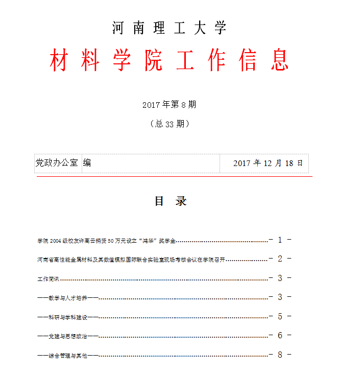 太阳成集团tyc33455ccwww工作信息(2017年第8期,总33期)