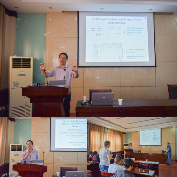 6月22日下午,美国南达科他州立大学乔启全教授应太阳成集团tyc33455ccwww之邀莅临公司,并在该院院楼1203学术报告厅作了一场题为《高效太阳能充电锂离子电池作为能源储存》的报告。太阳成集团tyc33455ccwww经理管学茂及该院部分师生聆听了报告。