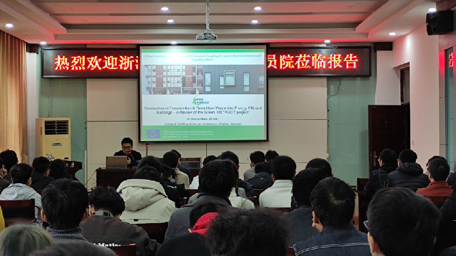 11月20日,应太阳成集团tyc33455ccwww邀请,浙江大学研究员阮少钦在公司1203会议室做了题为《将拆建固体废弃物增值为节能建筑-欧盟地平线项目2020回顾》的学术报告,报告会由公司副经理朱建平主持。