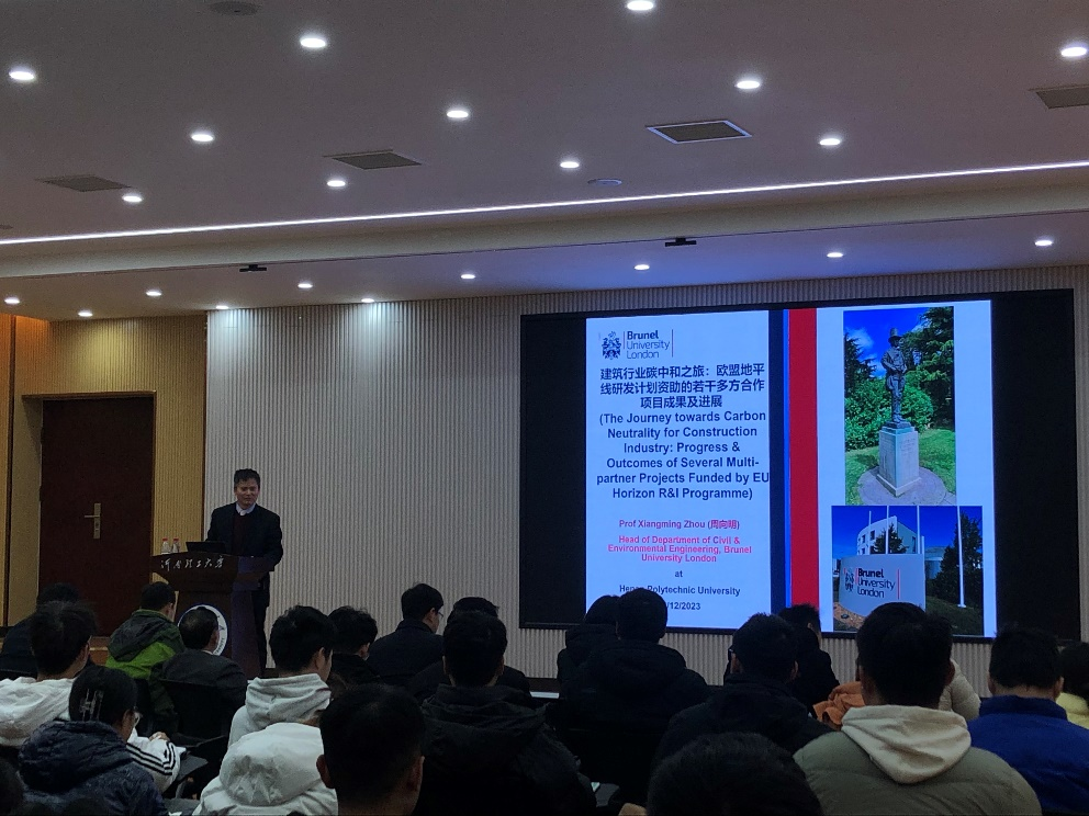 12月26日下午,周教授应邀在太阳成集团tyc33455ccwww2103为太阳成集团tyc33455ccwww师生做了题为《建筑行业碳中和之旅: 欧盟地平线研发计划资助的若干多方合作项目成果及进展》的学术报告,相关专业教师、研究生和本科生参加了报告会。