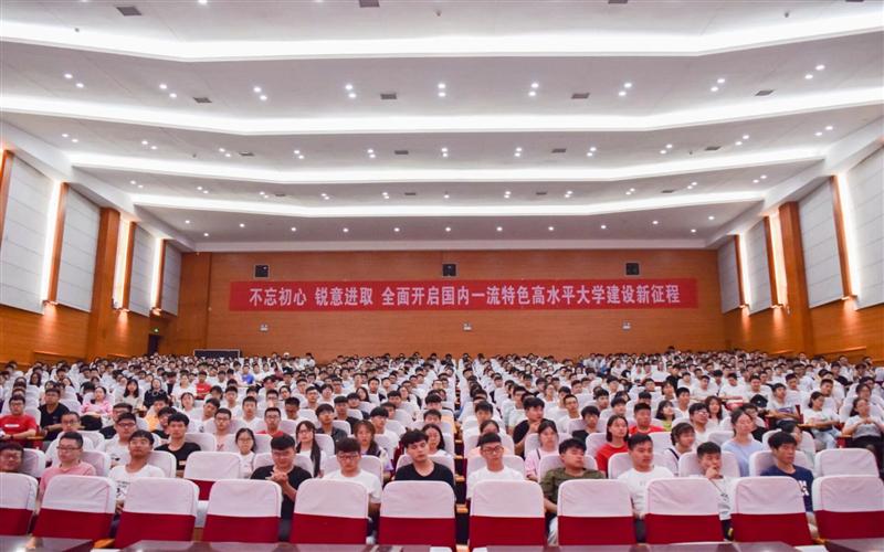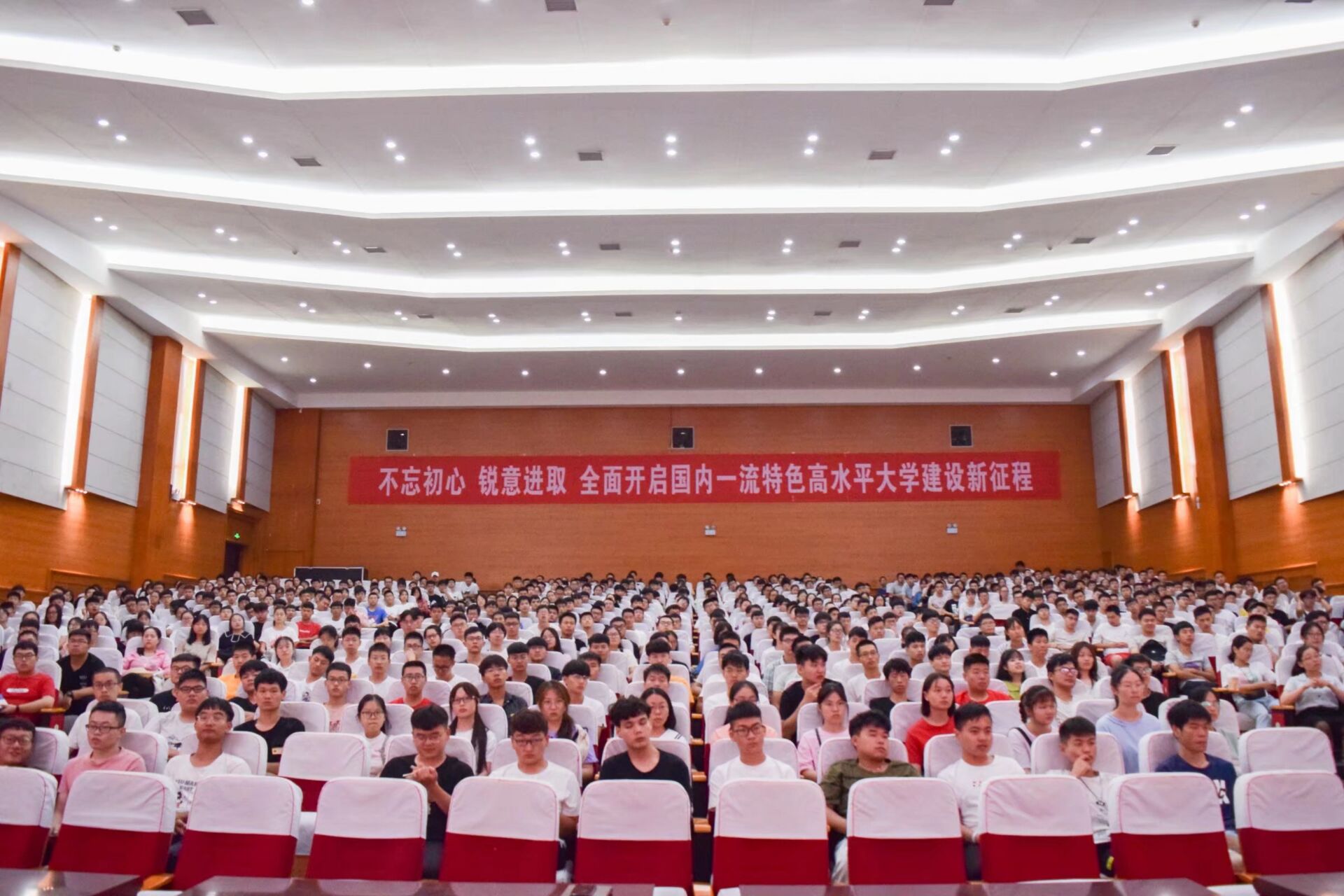 本次会议分为两个环节,一是师生见面,二是入学教育。在王昭龙宣读致辞之后,由杜泽兵书记发表讲话。首先,他对577名本科新生、70名研究生表示热烈祝贺,并给予了美好的祝愿和期望。杜书记在讲话中给本科新生提出了三点人生建议,第一是忘记过去、重新起航,他希望19级新生明白高中与大学的区别,以更加积极饱满的态度来迎接新的开始。第二是好学力行、勤勉求是,他劝告刚从高中毕业的新生要戒骄戒躁,不能过于放松,也不能对前方迷茫,相反要有不忘初心的精神,明白自己学习的目标。第三点是志存高远、爱国爱校,他强调,身为理工人,要学习理工精神,传承理工气节,胸怀国家,心怀天下,为人民的幸福奋斗。