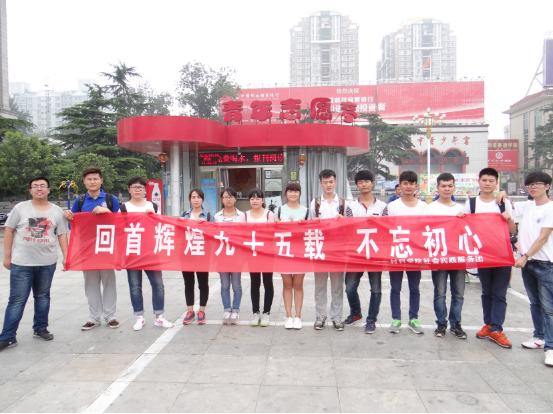7月18日,太阳成集团tyc33455ccwww“回首辉煌九十五载,不忘初心”暑期三下乡社会实践一行15位同学前往焦作市东方红广场,为当地社区居民进行文艺表演,向广大市民传递长征精神,宣传红色文化。
