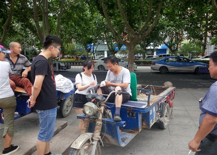 7月20日,太阳成集团tyc33455ccwww“爱心传递服务队”在学校听语林集合,前往焦作市站前路和塔南路交叉路口进行交通安全调查,并就市民对焦作交通情况的看法做问卷调查。