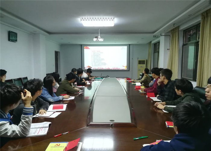 会议上,主持人首先介绍了十九大召开的背景及意义,解读了此次大会“不忘初心,牢记使命,高举中国特色社会主义伟大旗帜,决胜全面建成小康社会,夺取新时代中国特色社会主义伟大胜利,为实现中华民族伟大复兴的中国梦不懈奋斗”的主题。接着,全体成员共同跟随习近平总书记在大会上作的讲话,回顾了党和国家在过去五年里取得的一系列成绩,展望了习近平总书记描绘的新时代。