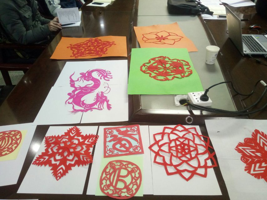 为响应贯彻落实党的十九大精神,让中华文化展现出永久魅力和时代风采,12月28日下午,无机非员工党支部于院楼2206室举行“十九大”主题剪纸艺展比赛。