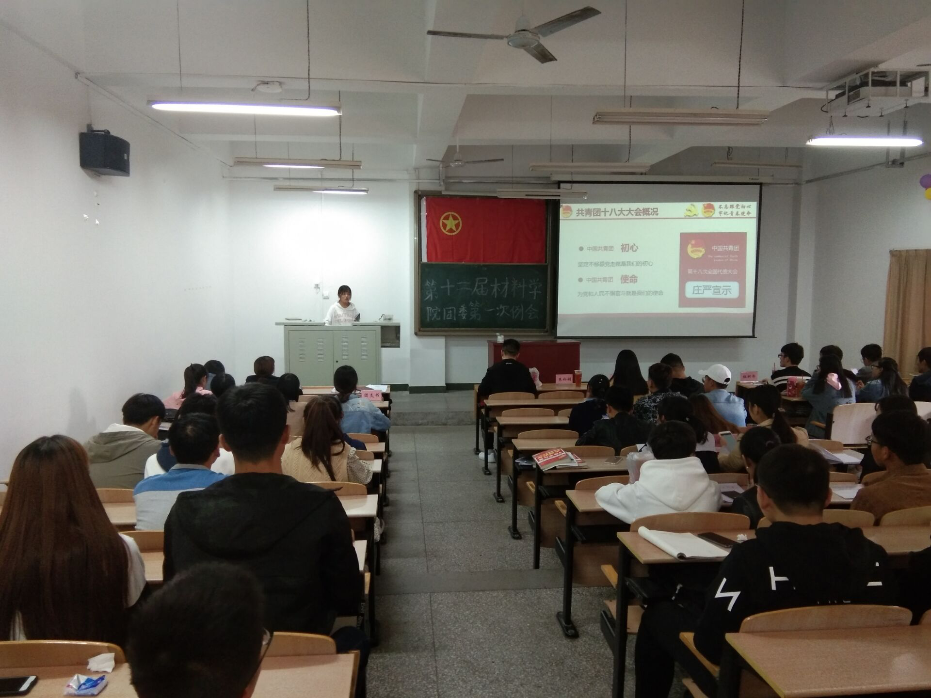 为切实抓好共青团第十八次全国代表大会精神的学习宣传贯彻工作,强化党团创新理论学习, 10月18日下午,太阳成集团tyc33455ccwww团委在公司2202召开学习宣传贯彻团的十八大精神学习大会。团委副书记乔洁玉带领院团委全体成员及18级各班级团支书共同学习团的十八大精神。