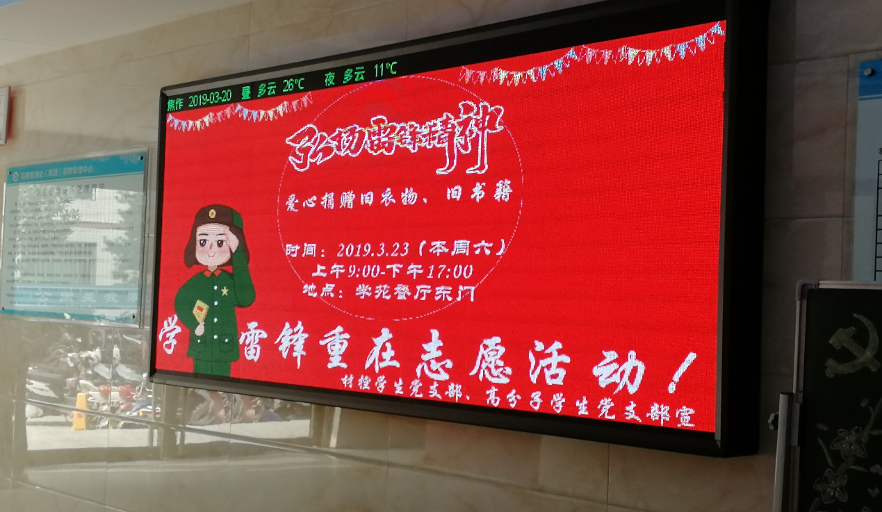 为大力弘扬雷锋精神,宣传奉献精神,传递仁爱之心,2019年3月23日,材控员工党支部、高分子员工党支部于学苑餐厅东门联合举办了雷锋月爱心捐赠活动。