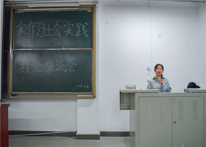 活动伊始,由实践部张鸿彪进行往期寒假社会实践总结,他分别从参与情况、获奖情况以及在实践过程中出现的问题等方面向大家进行讲述,并强调了社会实践能使同学们有机会将知识运用于生活,而且能够拉近老员工与社会的距离。接下来,殷鑫、李雪芹、钟巧等同学代表参加寒假社会实践的同学与大家分享实践经历和感受,生动详细地为大家讲述对寒假社会实践的理解、实践的过程以及收获和不足。最后是提问环节,观众在演讲者结束后向他们提出自己的疑惑或想法,现场氛围活跃。