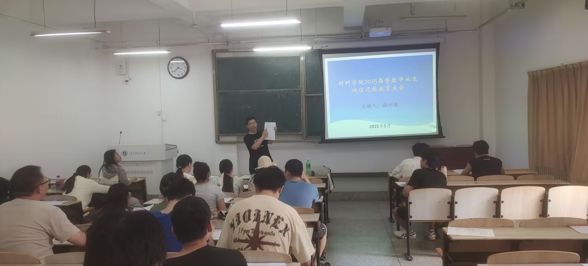 为增强贷款毕业生的诚信意识,宣传国家助学贷款政策,引导公司贷款毕业生履行还款义务,树立正确的借贷观念,公司于5月28日下午,在院楼2202教室开展了2025届助学贷款毕业生还款确认暨诚信教育会议。公司2025届未还清贷款的毕业生参与了本次会议,大会由公司资助专员杜少康老师主持。