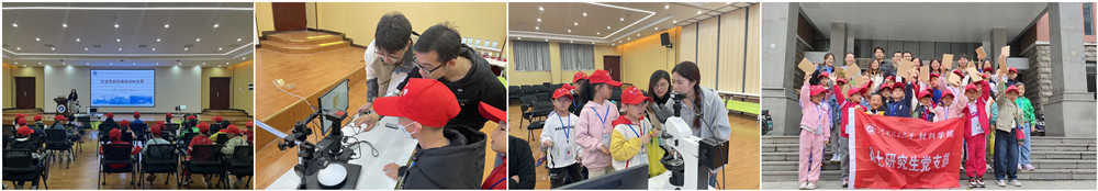 活动旨在帮助“小记者”们学习了解显微镜的简单用法。首先,黄丹对微观世界、显微镜的组成及简单操作进行讲解,小记者们整齐地就座,认真地聆听讲解。随后,由研究生党支部成员带领各位“小记者”们参观显微镜。“小记者”们井然有序地排队,纷纷拿出自己提前准备好的叶子、粮食和花,放置在显微镜下进行观察和操作。活动中,小记者们通过显微镜观察到了叶子的脉络、粮食的表面形貌和花瓣的脉络同肉眼看到的有很大的不同;观察了经过硝酸处理并打磨好的金属表面,更进一步扩展了孩子们对微观世界的认识。最后,研究生党支部成员为小记者们发放了准备好的纪念品,对孩子们进行鼓励和表扬。