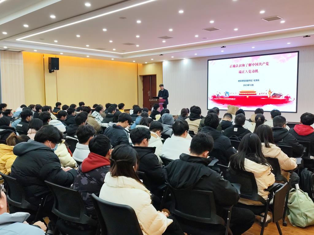 杜泽兵以《正确认识和了解中国共产党,端正入党动机》为题,从正确认识和了解中国共产党、申请入党的条件、端正入党动机三个方面进行了详细讲解。他强调:党的性质、最高理想、根本宗旨和初心使命是我们党思想和行动的基础;党的组织、作风、纪律是党的执政能力、执政地位、执政使命的重要保证;一个人在组织上入党,只是政治生活的新开端,要把入党作为继续前进的新起点,更加严格的要求自己,真正践行入党誓词。最后他希望:每名入党的同志都要端正入党动机,更加深刻的认识党,更加坚定的拥护党,更加自觉地追随党;要增强组织观念、发扬党的优良作风,永葆党的先进性和纯洁性;要不懈奋斗,为全面建设社会主义现代化国家、全面推进中华民族伟大复兴贡献力量。