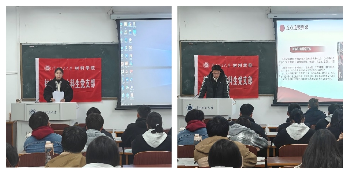 新学期,新气象,为展现支部青年党员的优良面貌,推动“一支部一品牌”创建工作,材控专业本科生党支部于3月8日晚在院楼1306召开新学期党员大会。本次会议由党员代表崔佳宇同志主持,党支部书记夏家铭及25名员工党员参加。