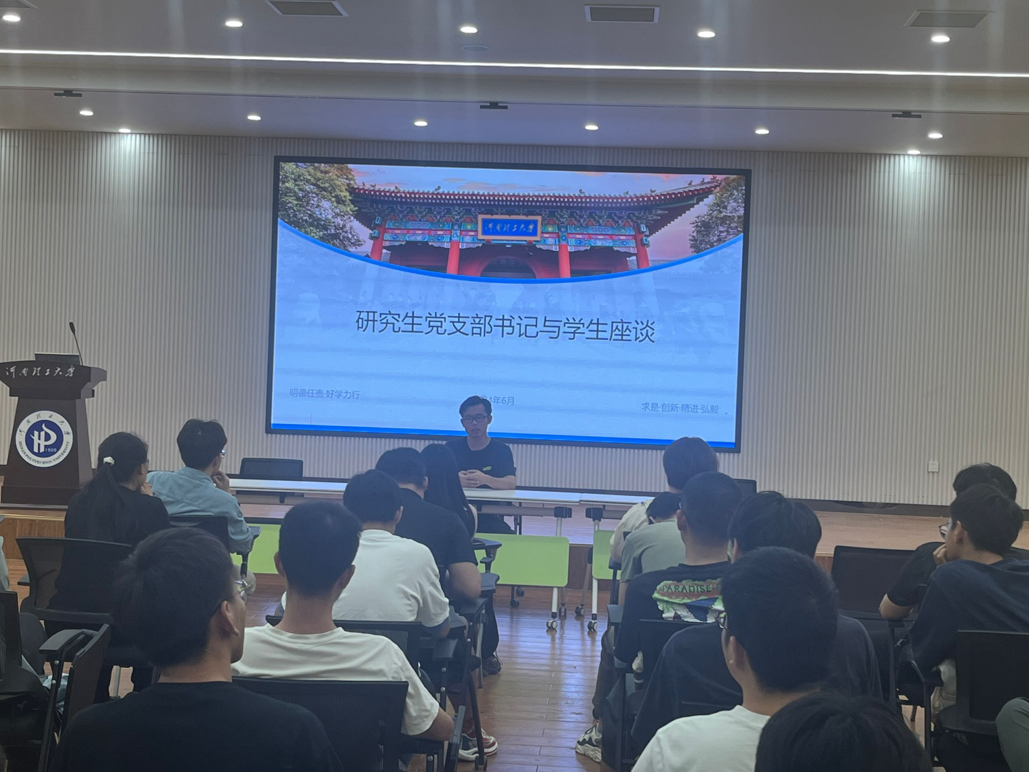 座谈会上,温英杰首先听取了研究生关于组织发展相关工作的疑问,针对同学们提出的问题逐一进行了解答。随后,他向同学们介绍了入党的基本流程。告知同学们提交入党申请书是表达个人政治愿望和决心的重要方式。积极分子期间需要通过院级和校级的政治理论的测试,不断提升政治理论水平和综合素质。最后,他提醒同学们,入党是一个严肃而庄重的过程,需要同学们以认真的态度对待,并鼓励同学们积极参与党组织的活动,不断提高自己的政治素养,为成为一名合格的党员而努力。