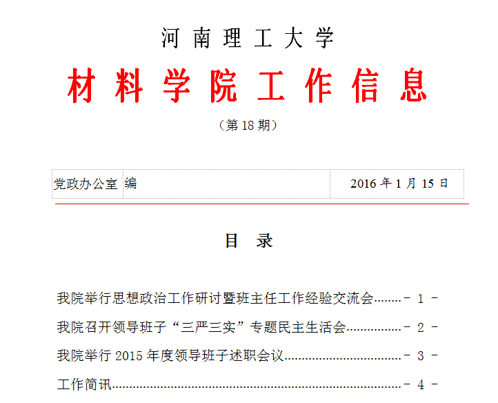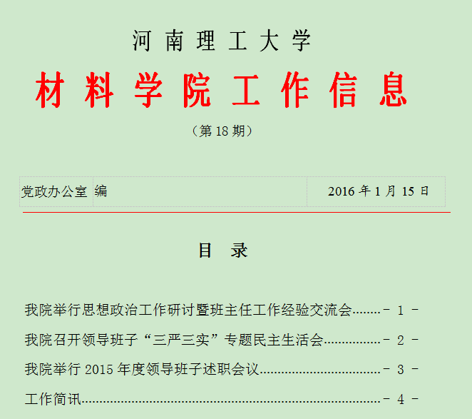 河 南 理 工 大 学材 料 学 院 工 作 信 息(第18期)